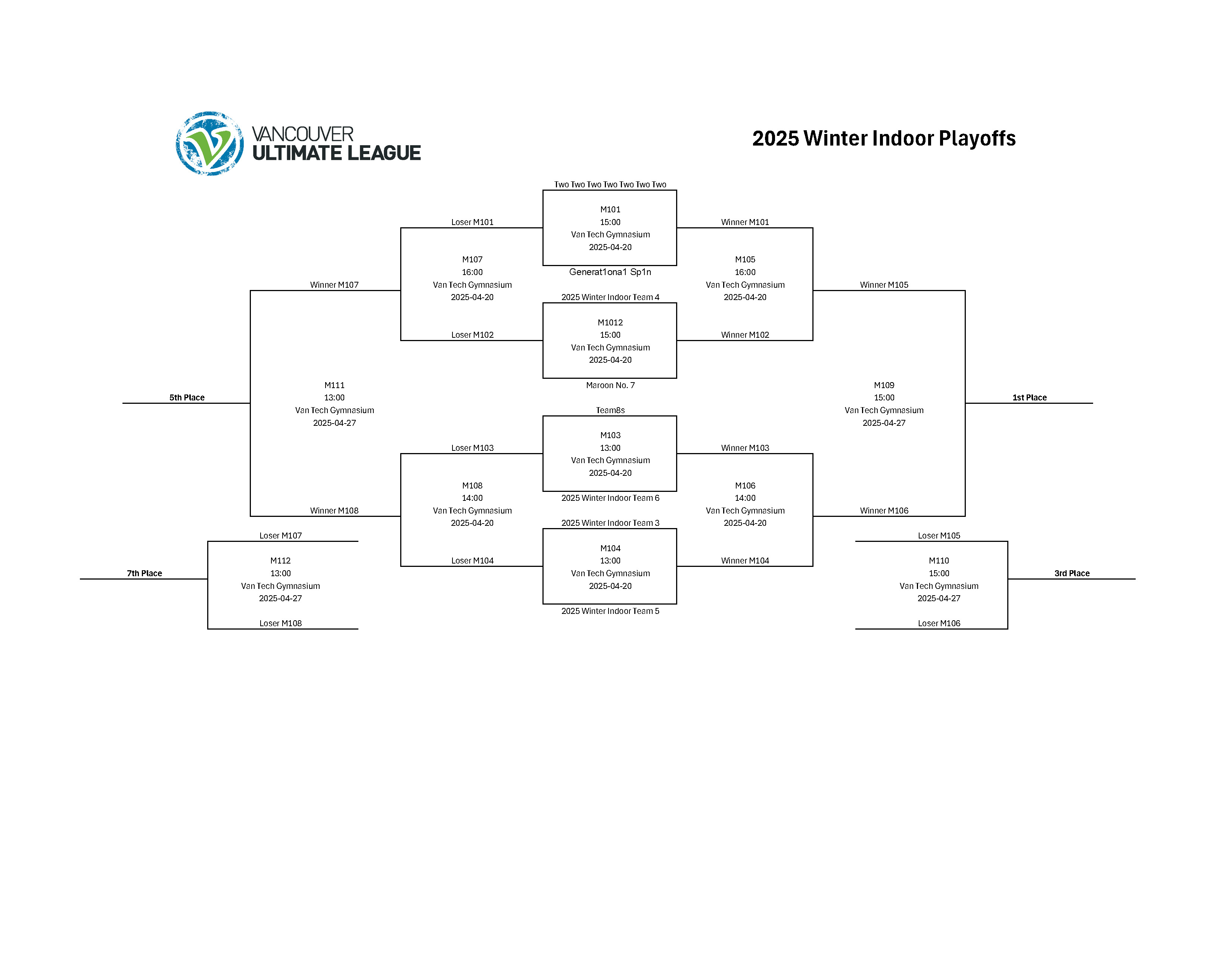 | 2025 Winter Indoor Team 5 | 2025 Winter Indoor Team 6 | 25 – 40 |