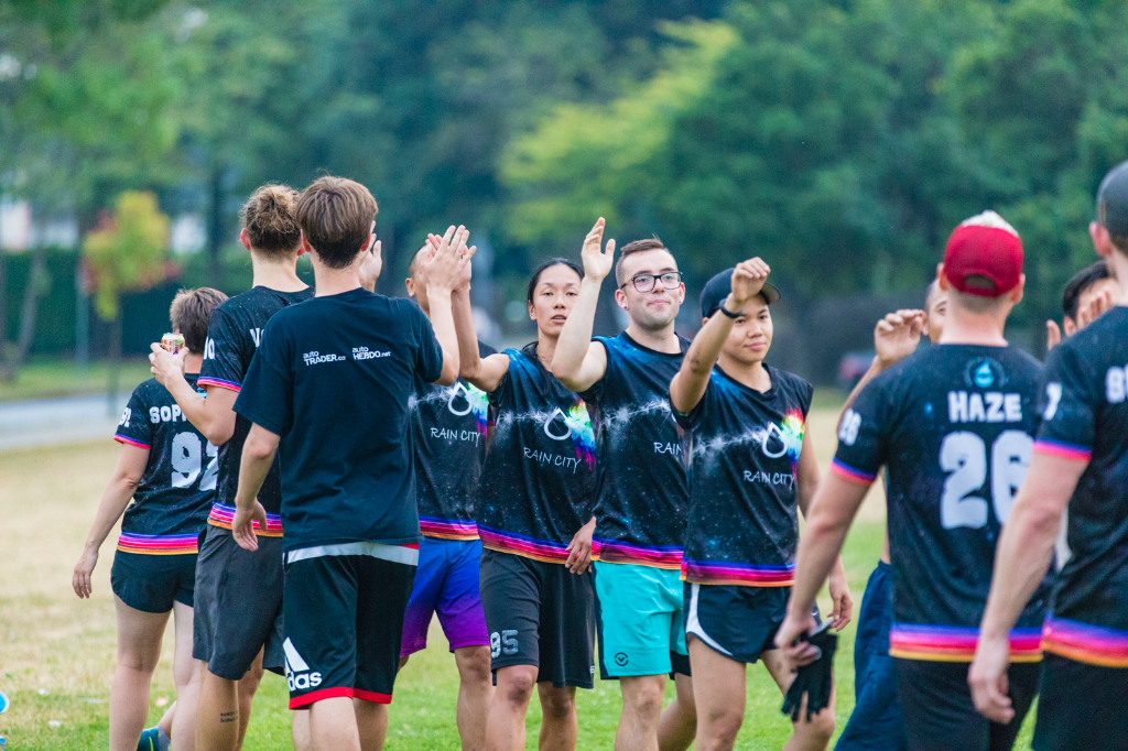 This year, we’ve partnered with Rain City Ultimate Club (RCUC) to work on several Pride initiatives. RCUC is a non-profit community organization dedicated to promoting ultimate to LGBTQ2S+ individuals and allies in Vancouver by providing a supportive and fun atmosphere in which to develop as athletes and individuals. They host weekly practices in the summer, a Pride tournament during Pride Week and have several teams playing in VUL leagues throughout the year.