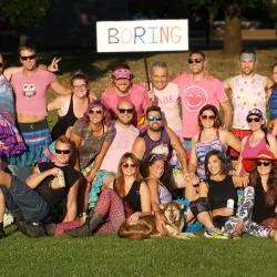We are a rag tag of tutu wearing players who like dancing, burning things and temporary autonomous zones. We wear pink and purple shirts in addition to our glorious tutus.