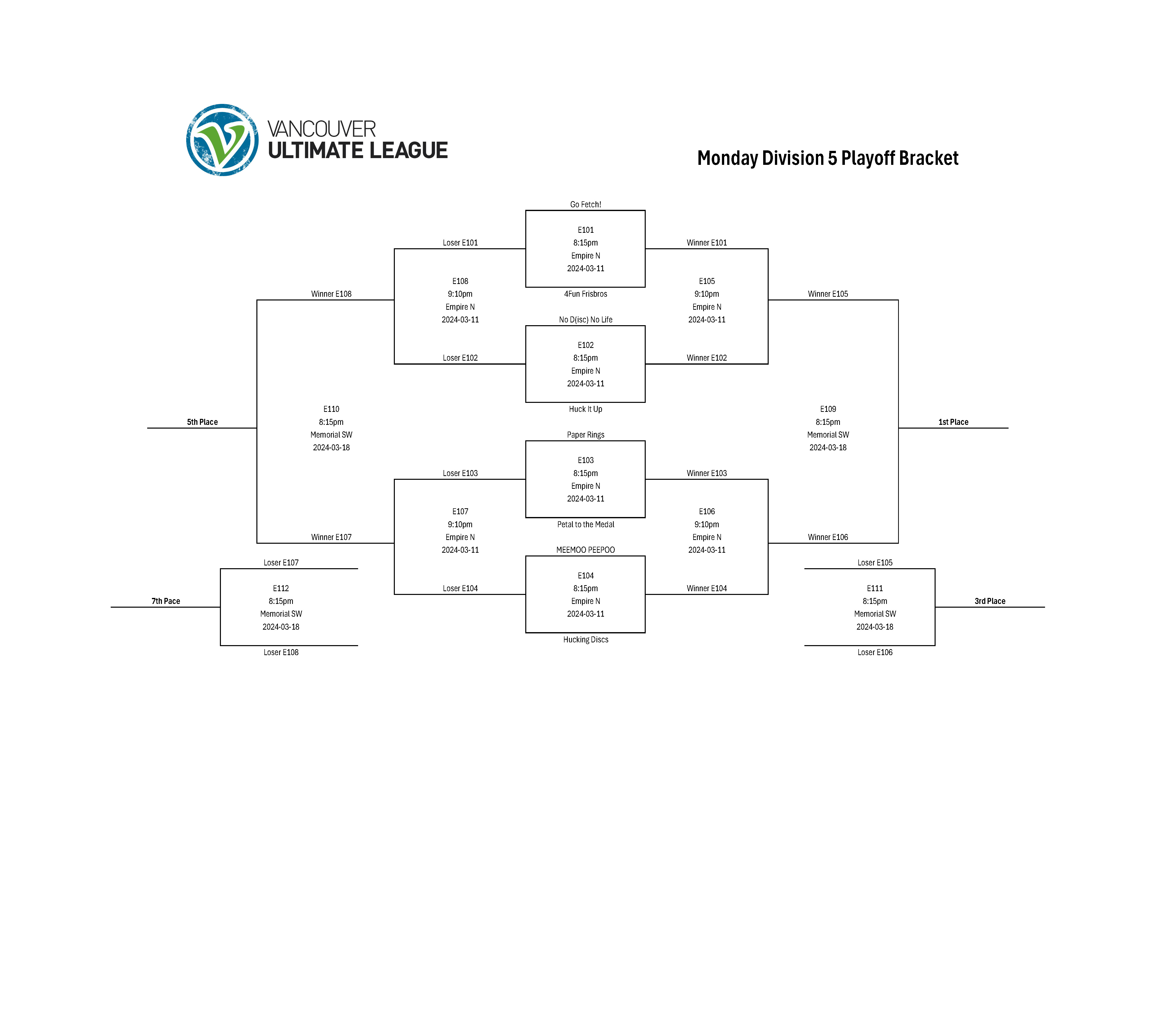 | Hucking Discs | Petal to the Medal | 10 – 15 |