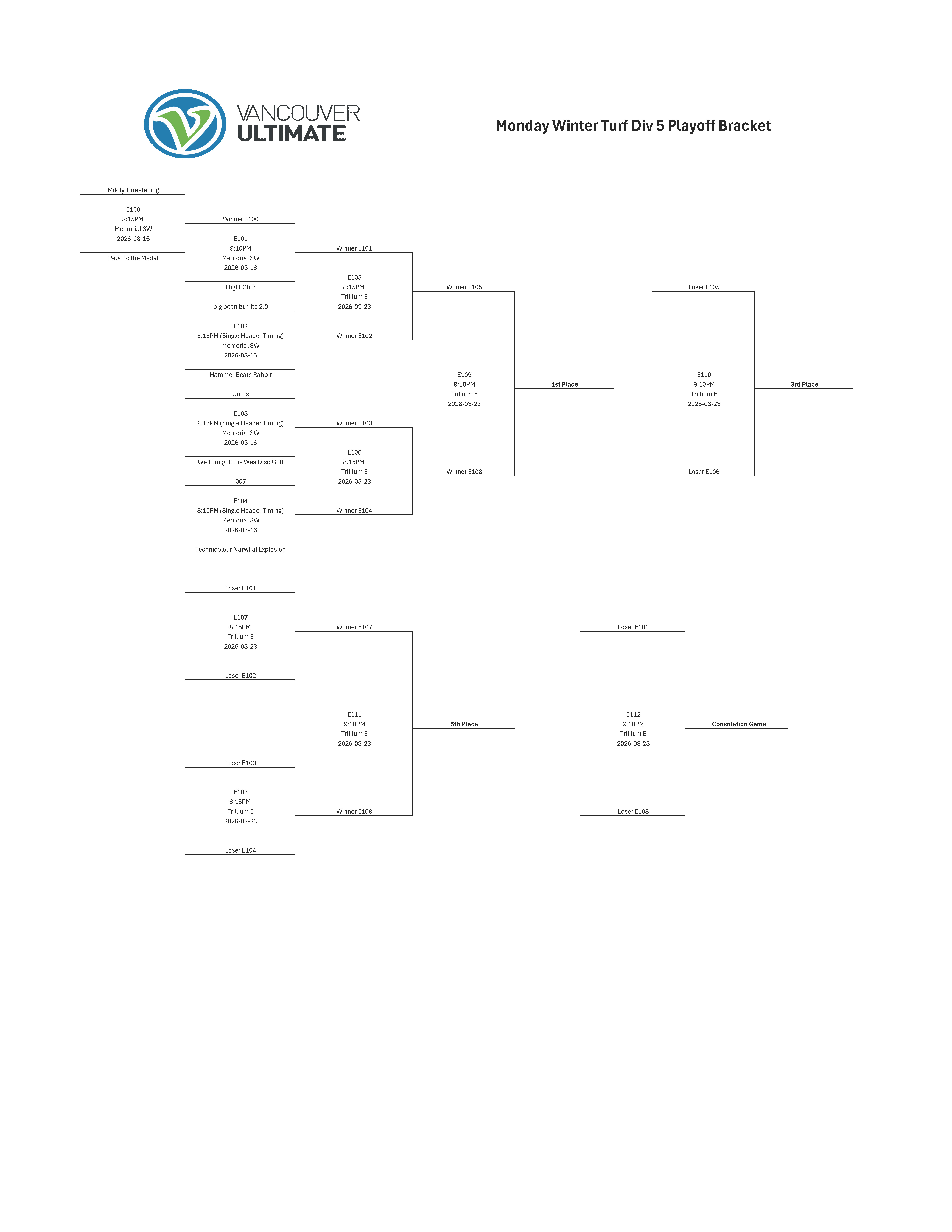 | Mildly Threatening | We Thought this Was Disc Golf | 7 – 15 |