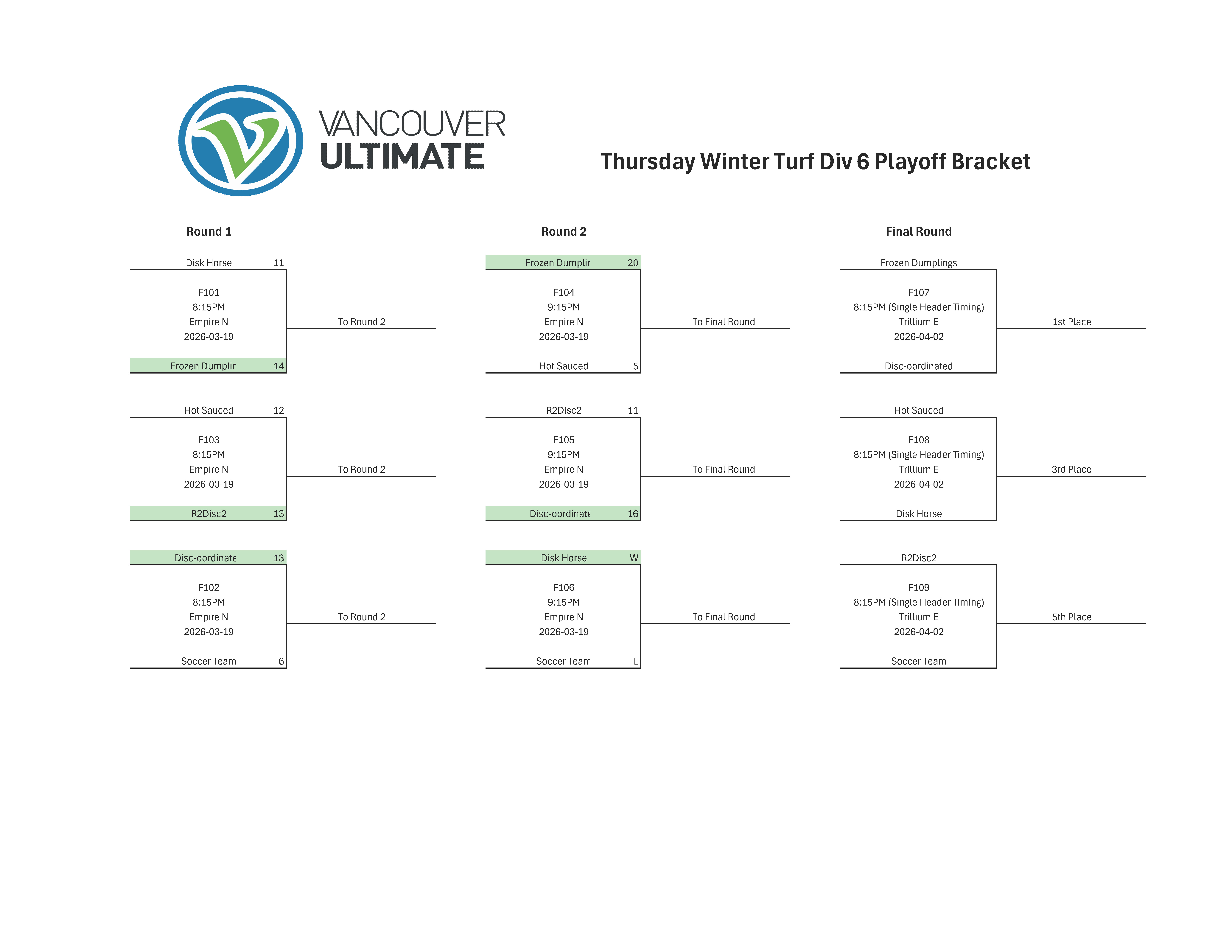| Disk Horse | Hoka Enthusiasts | 16 – 15 |