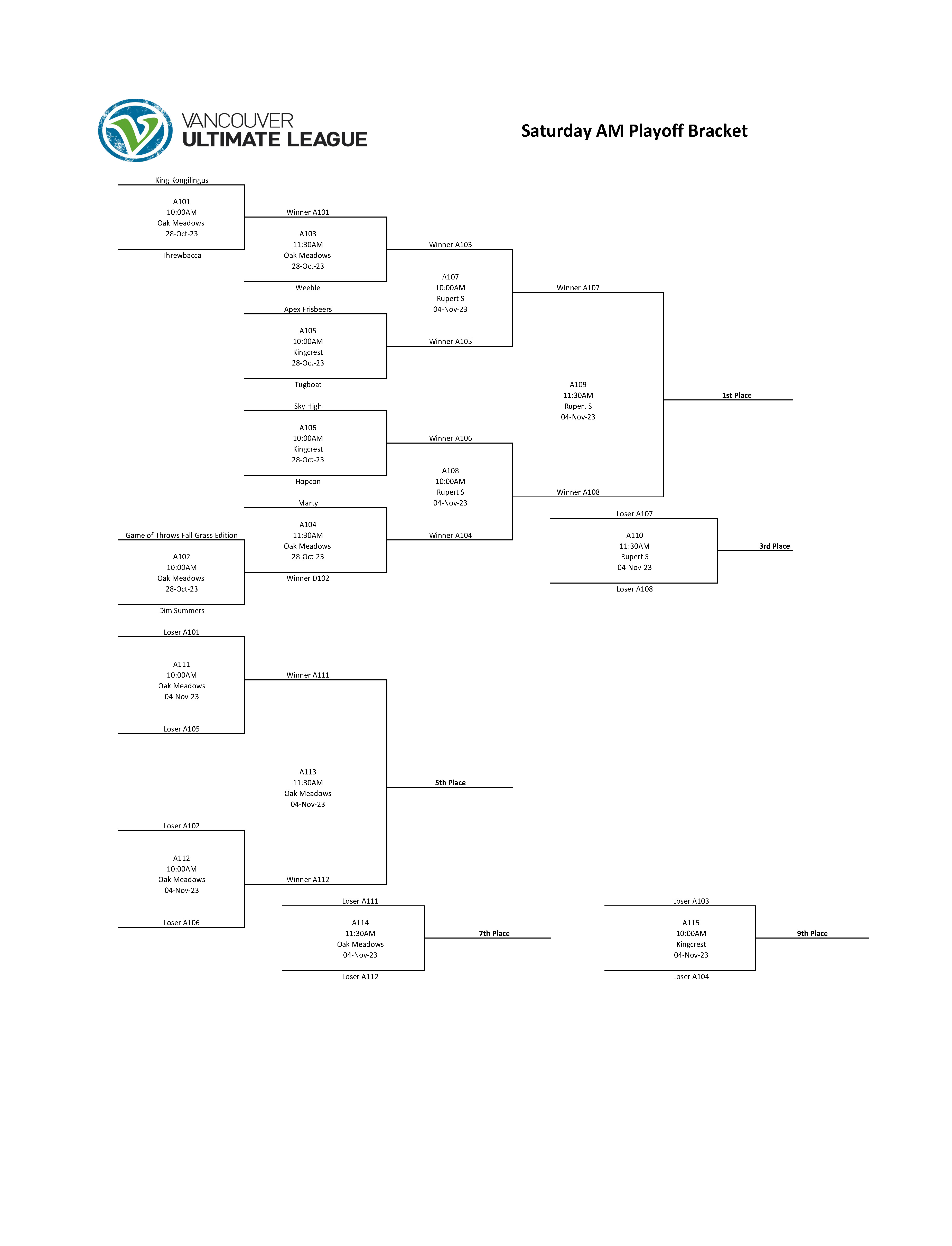 Sat Oct 28: 10:00 Kingcrest