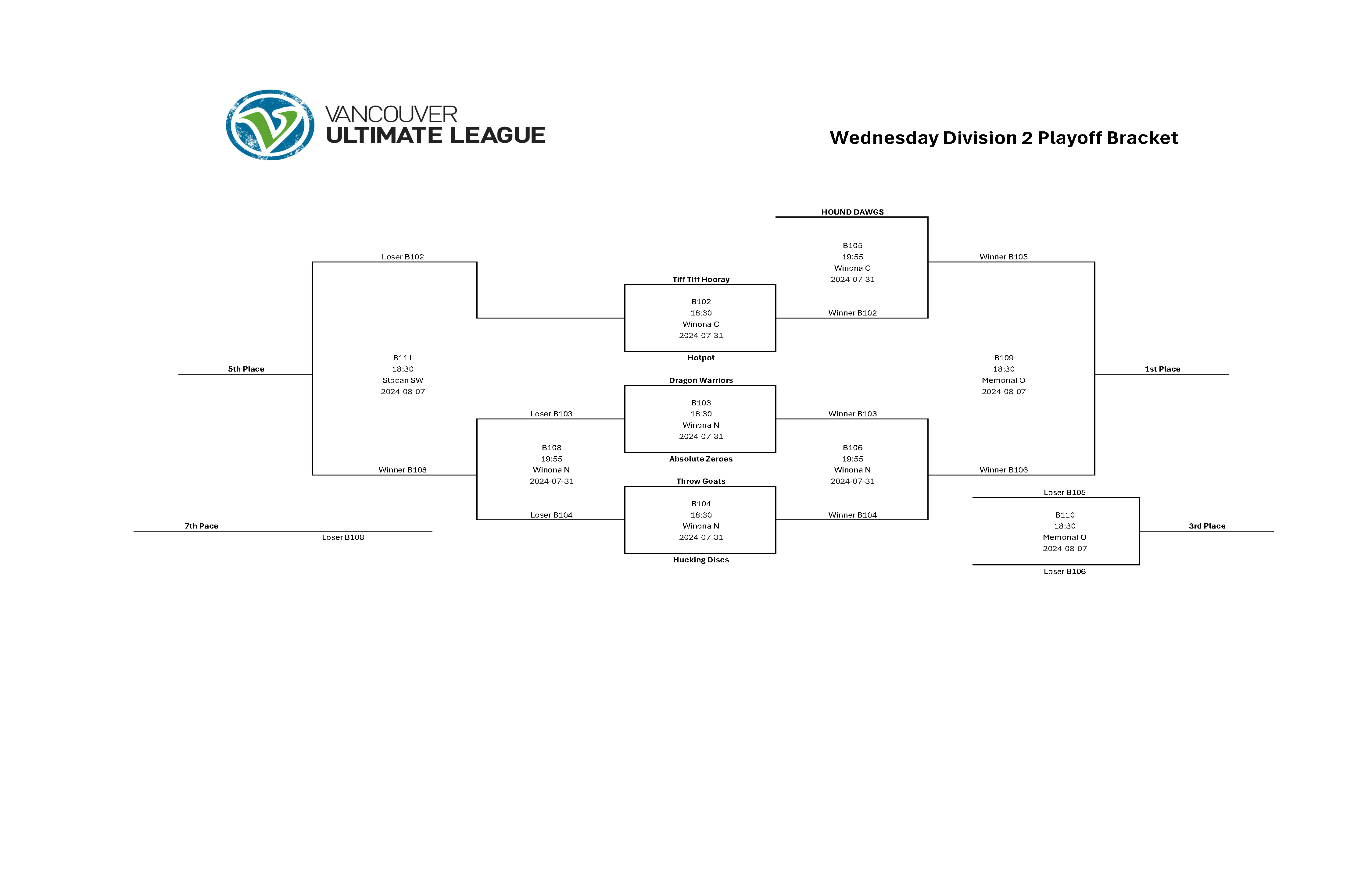 | Tiff Tiff Hooray | Hucking Discs | 7 – 13 |