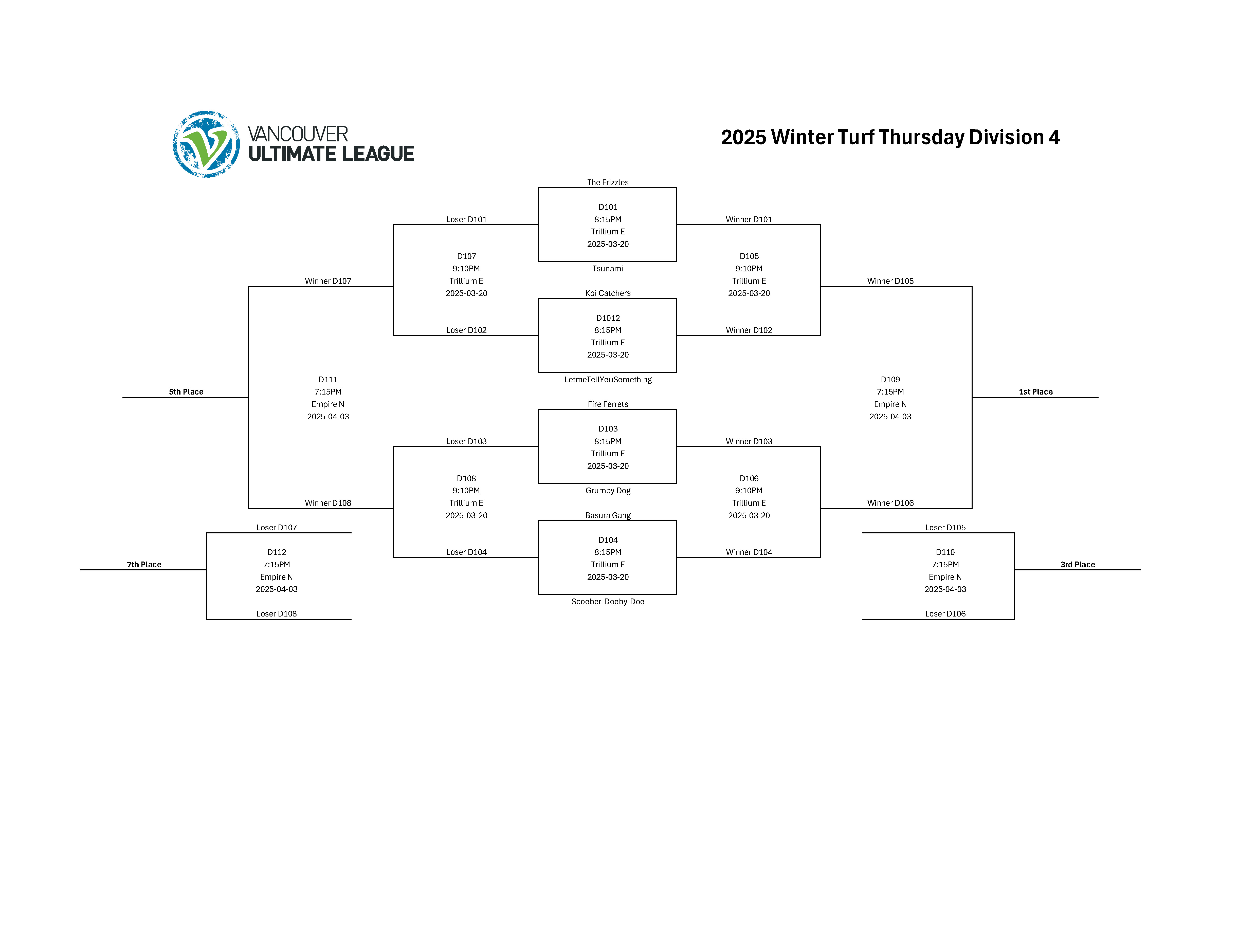 | Fire Ferrets | LetmeTellYouSomething | 21 – 17 Unconfirmed |