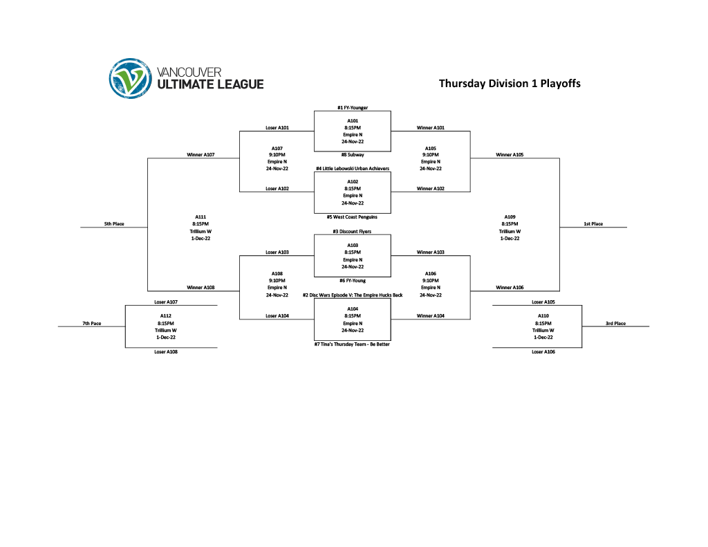 | Little Lebowski Urban Achievers | Disc Wars Episode V: The Empire Hucks Back | 0 – 0 Unconfirmed |