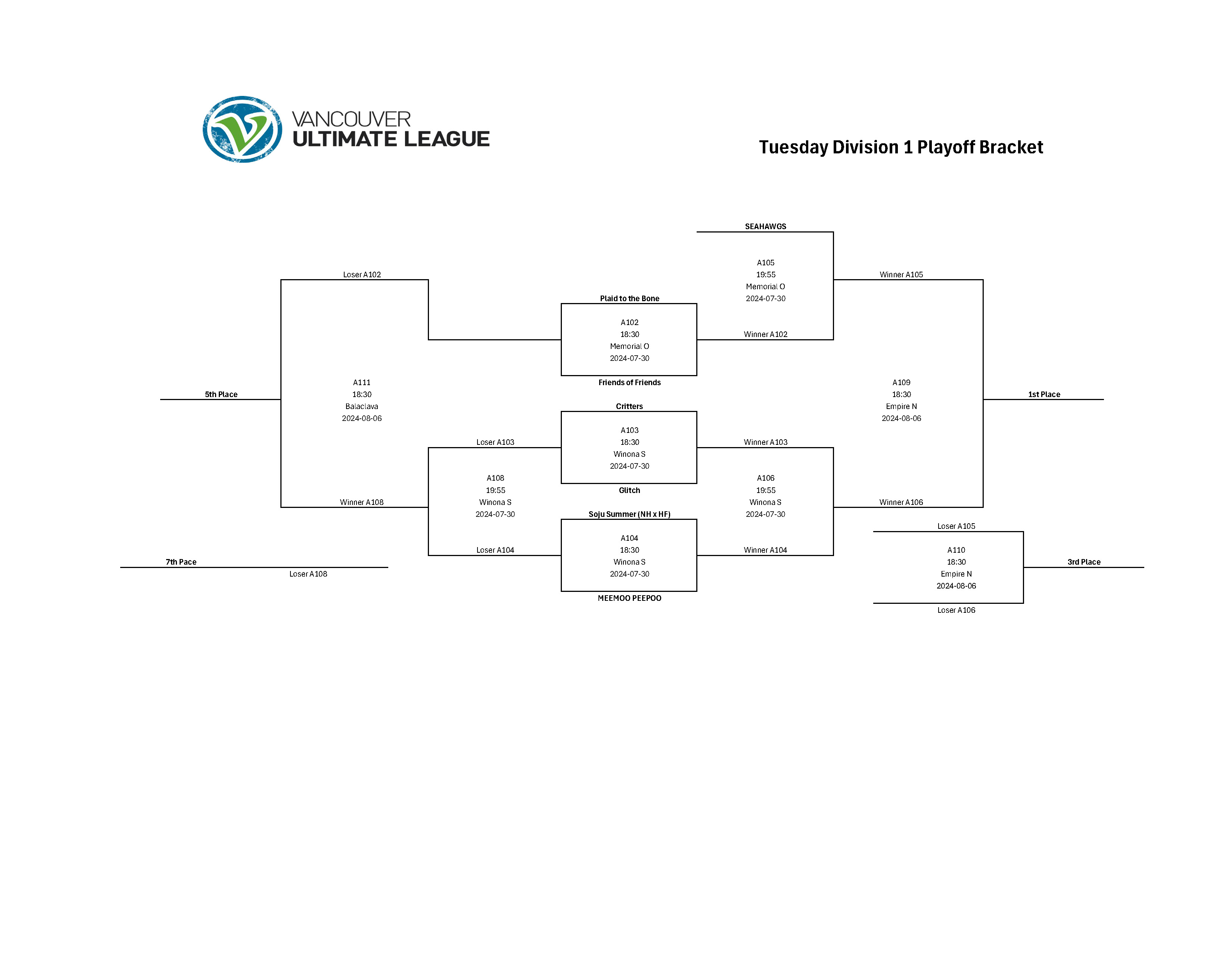 | SEAHAWGS | Disc Space Violators | 4 – 0 Forfeited |